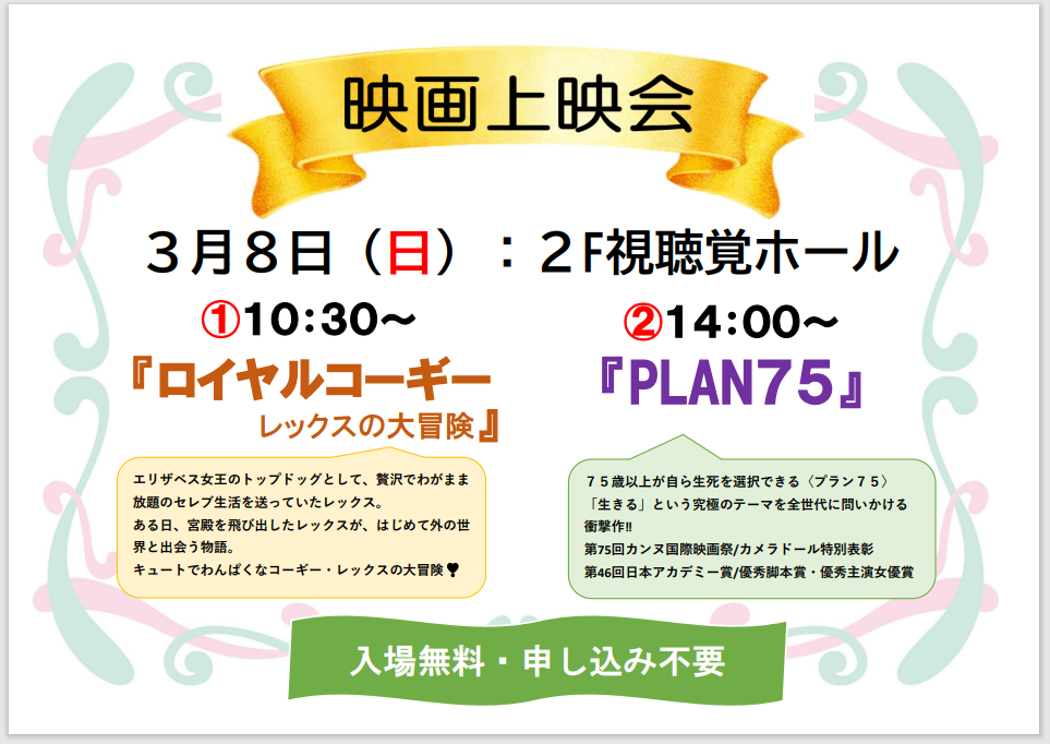 3月8日(日)は 図書館へ映画を観に行こう!