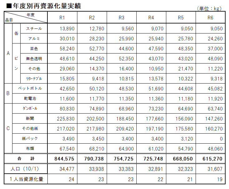 市では、資源物の分別を「資源として使える」「もったいない」という視点だけでなく、「収入となる」ことからも、資源物収集を続けていきます。ご協力をお願いします。