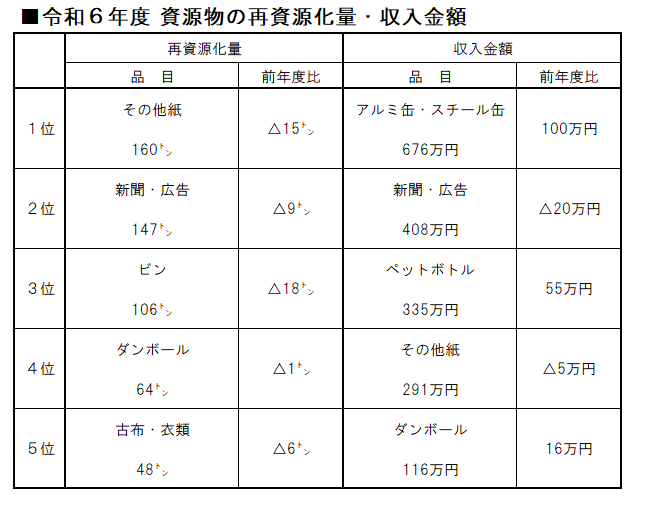 ※売却単価が異なるため、再資源化量と収入金額の順位が異なります。