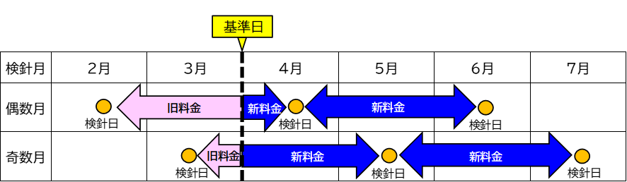 令和8年4月1日(基準日)から新料金を適用します。使用期間が基準日をまたぐ場合は、 新・旧料金を使用日数で按分して料金を算定します。