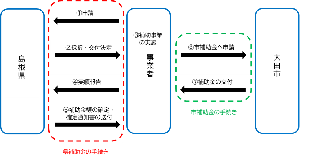 ※島根県補助金の「補助金額の確定・確定通知書の送付」が終了しなければ、市の補助金の申請はできませんので、