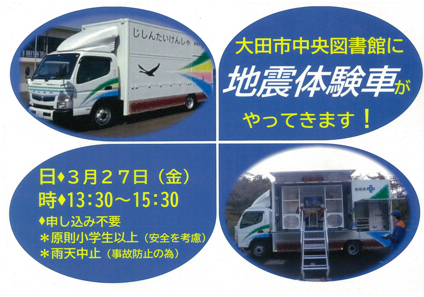 3月27日(金)は 図書館で〖地震の揺れを体験〗してみませんか?